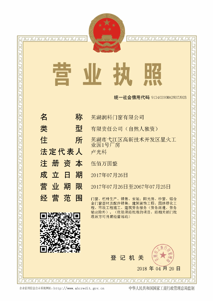 - 蕪湖潤(rùn)科門(mén)窗有限公司,位于安徽省蕪湖市,專(zhuān)注于斷橋鋁門(mén)窗、鋁合金門(mén)窗、塑鋼門(mén)窗等工程門(mén)窗制作、加工、銷(xiāo)售和安裝。 公司不斷引進(jìn)先進(jìn)的加工生產(chǎn)設(shè)備,建立嚴(yán)格產(chǎn)品生...